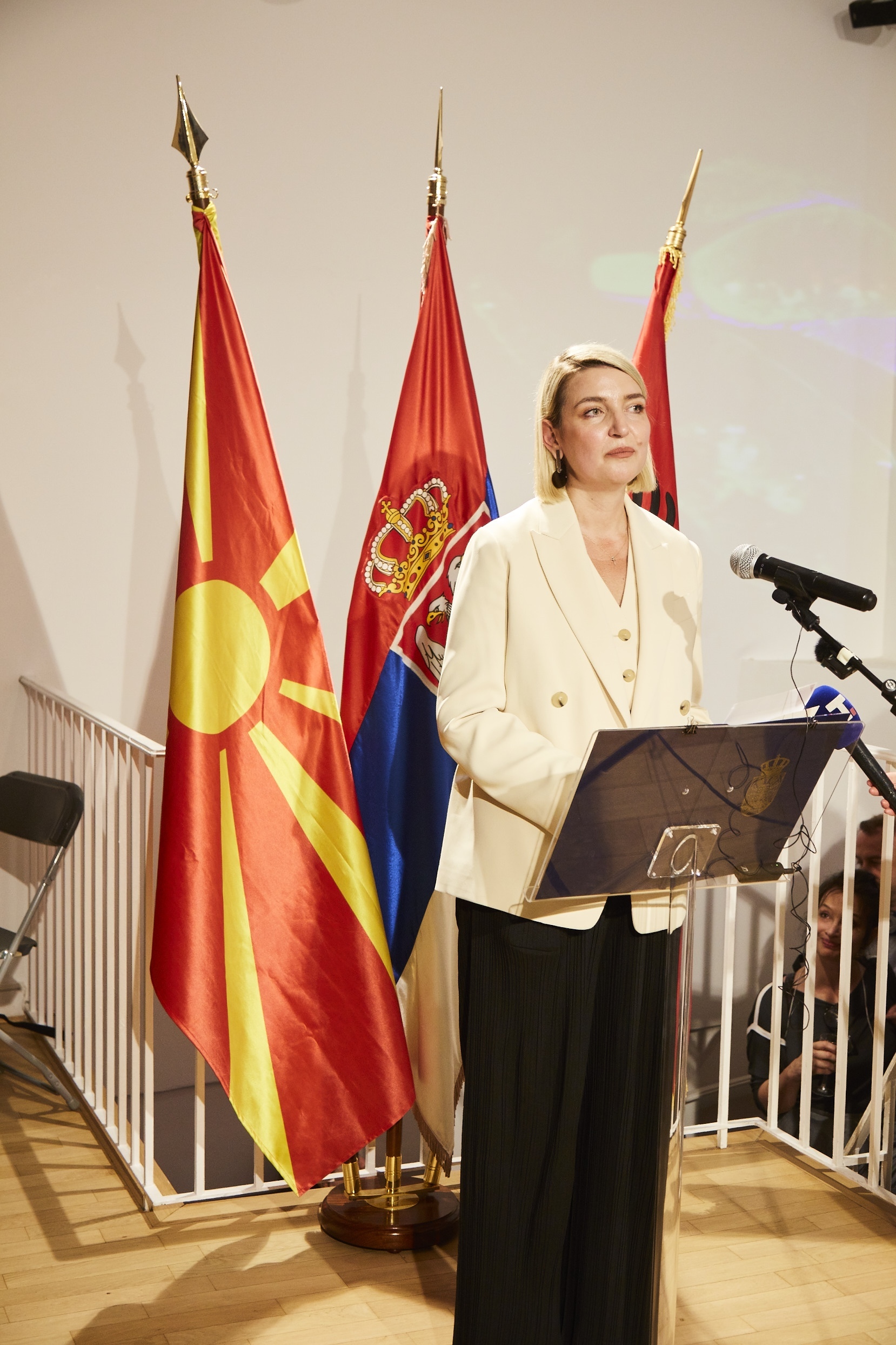Гојковић је том приликом истакла да изложена дела ове поставке, која је спојила уметнике из Србије, Албаније и Северне Македоније, најбоље сведоче о великом уметничком потенцијалу три земље, као и о могућностима које отвара аутентична регионална иницијатива „Отворени Балкан“.
