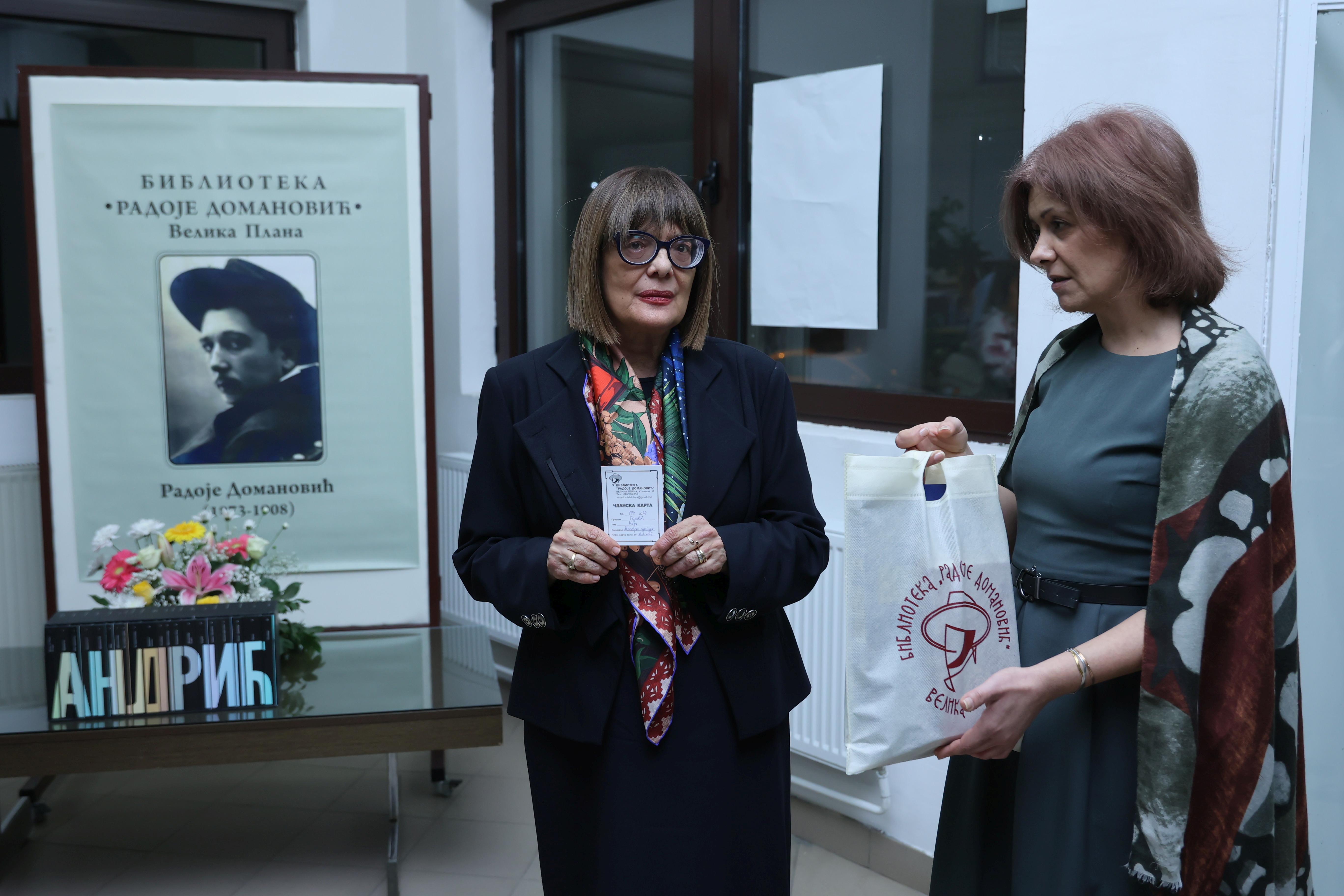 „Врло вероватно велика већина нас не памти модел свог првог мобилног телефона, али се свакако сви добро сећамо прве прочитане књиге. Добрим делом и због тога, књигу, у свом изворном папирном облику, уз дужно поштовање према свим другим видовима читалачке комуникације, ништа не може да замени. И зато морамо да будемо свесни колико су библиотеке, а на првом месту вредни и посвећени људи запослени у њима, који некако у тишини и мимо светлости рефлектора раде огроман посао за народ и државу, њихов опстанак и трајање“, закључила је Маја Гојковић честитајући директорки Библиотеке „Радоје Домановић“ и запосленима 75. рођендан уз жељу да ова установа остане место отварања нових видика и стицања нових знања.