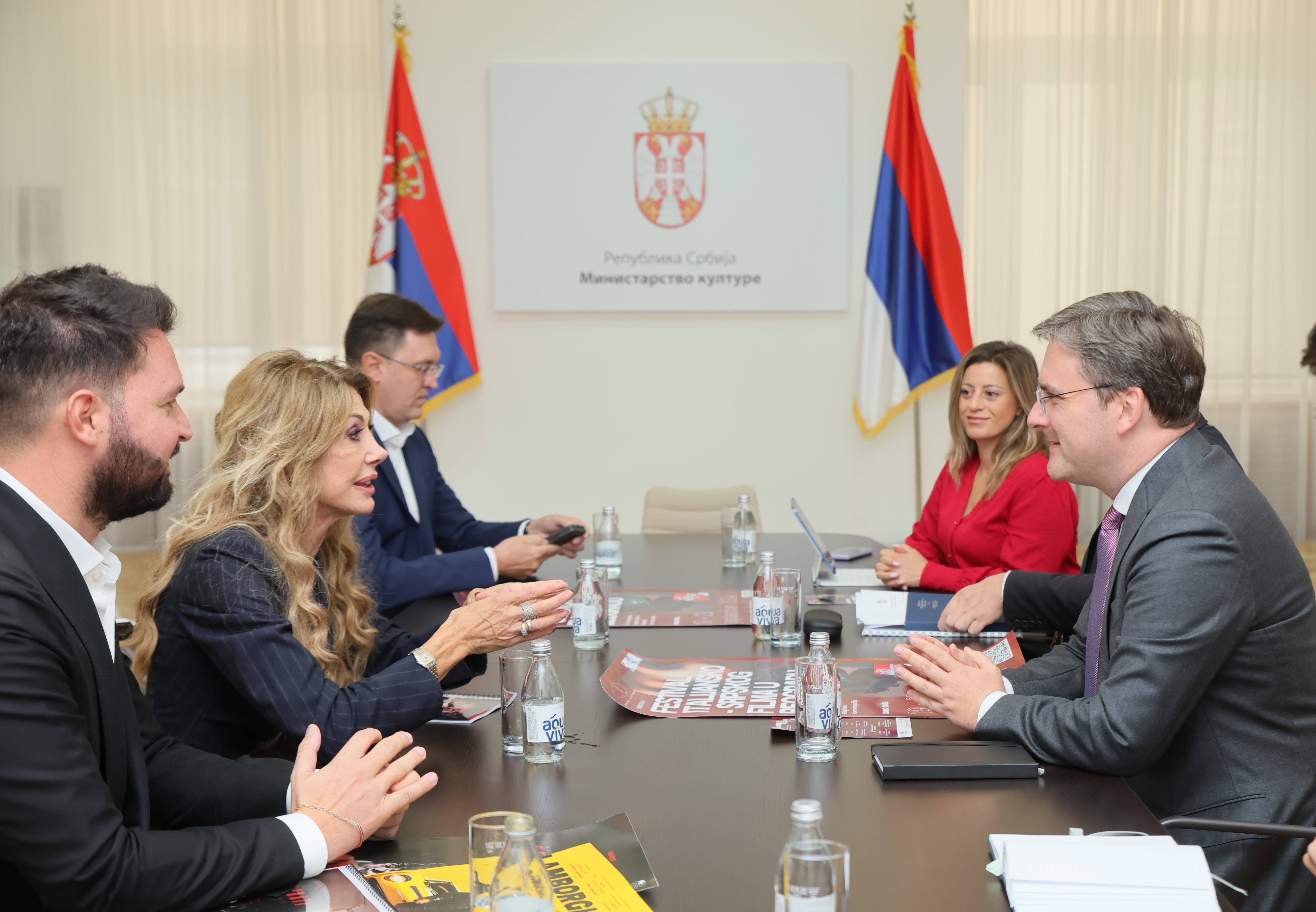 Mинистар културе Николе Селаковић састао се данас са Габријелом Карлучи, оснивачем Фестивала италијанско-српског филма, који се ове године одржава у Београду и Новом Саду од 19. до 23. септембра и италијанским продуцентом Андреом Иерволином, чија продукцијска кућа има студио у Србији.