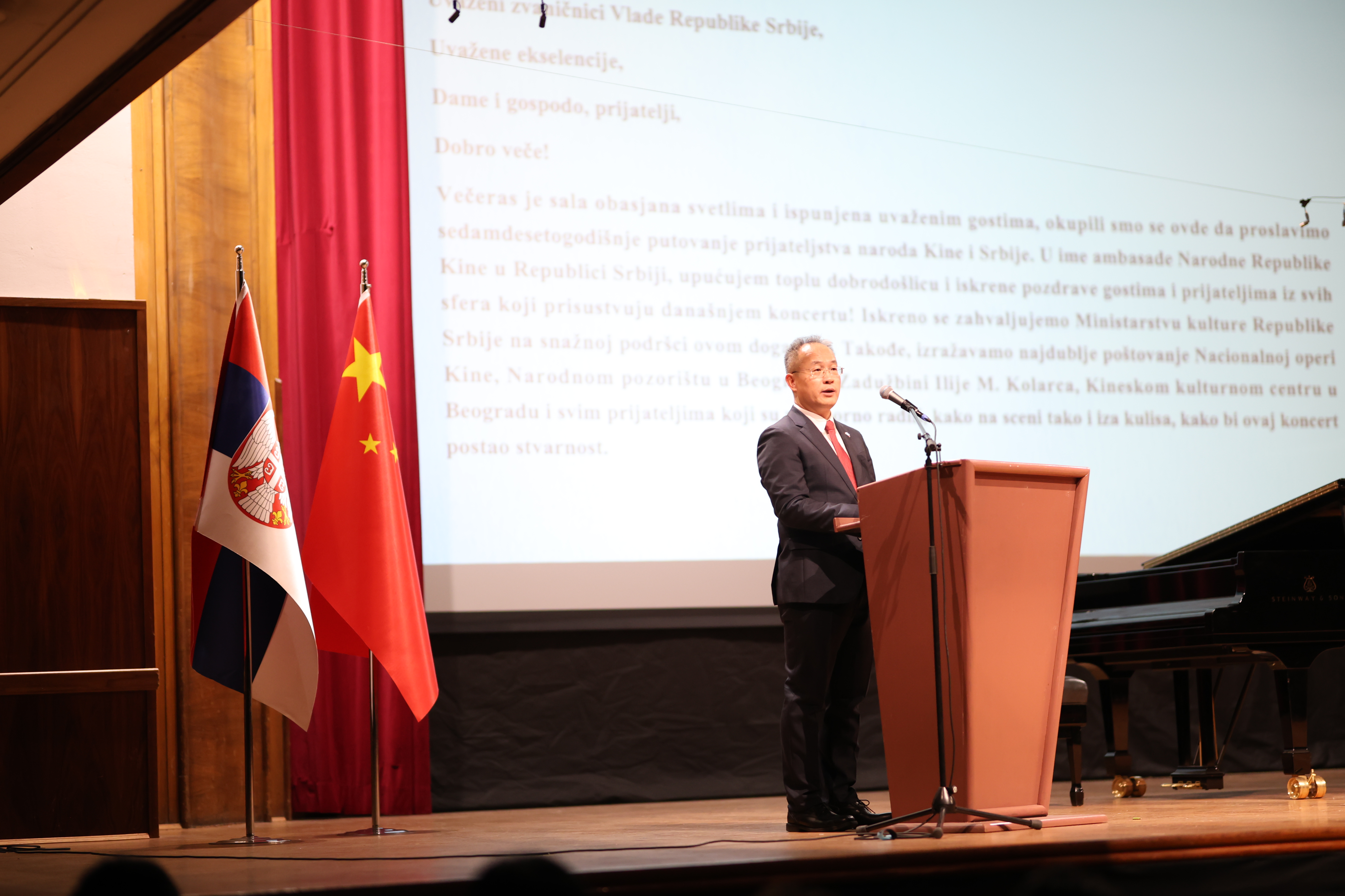 Министар културе Никола Селаковић обратио се на свечаном концерту Кинеске националне опере, одржаном у Задужбини Илије М. Коларца, поводом обележавања јубилеја „70 година пријатељства народа Србије и Кине“.