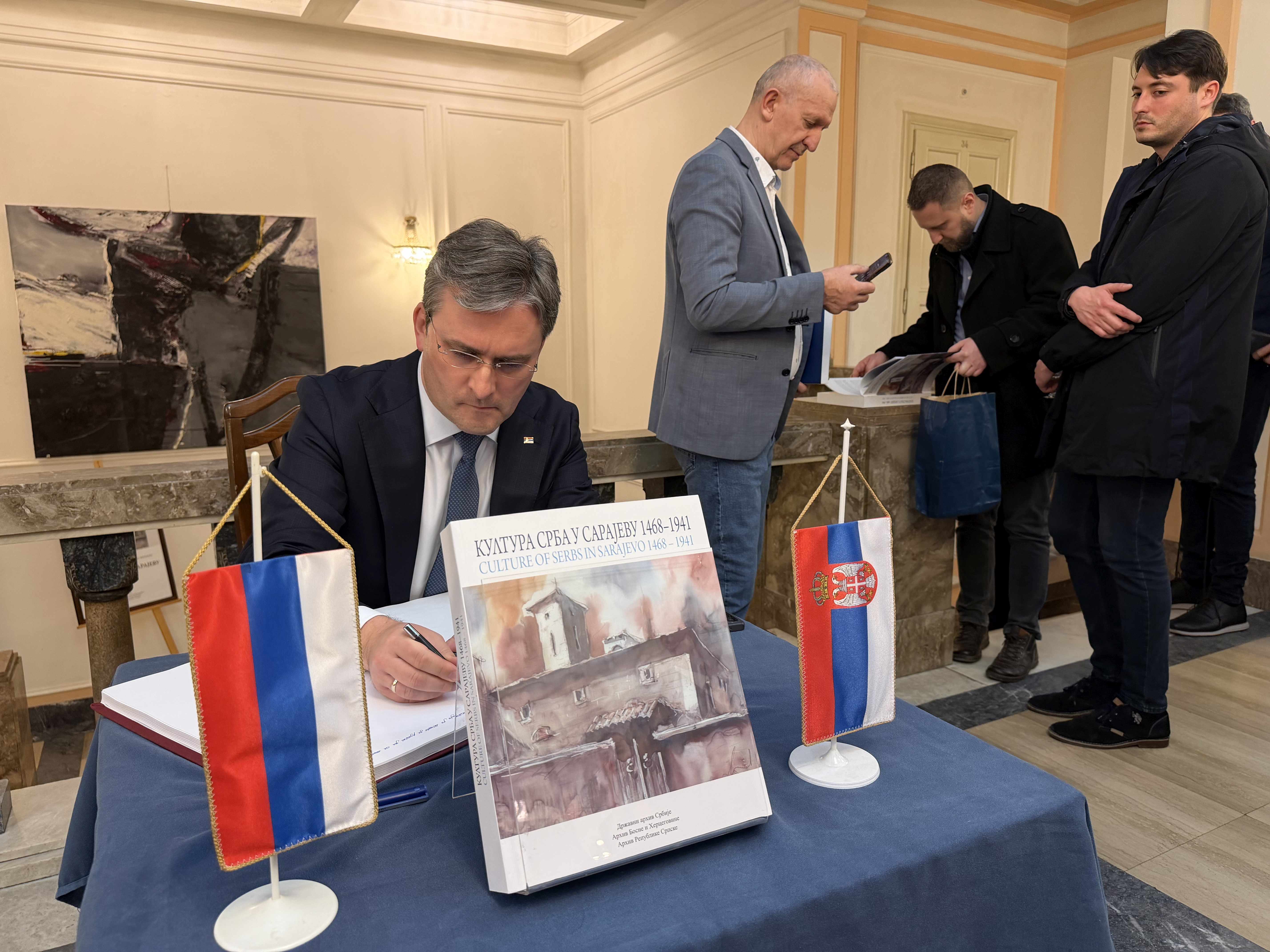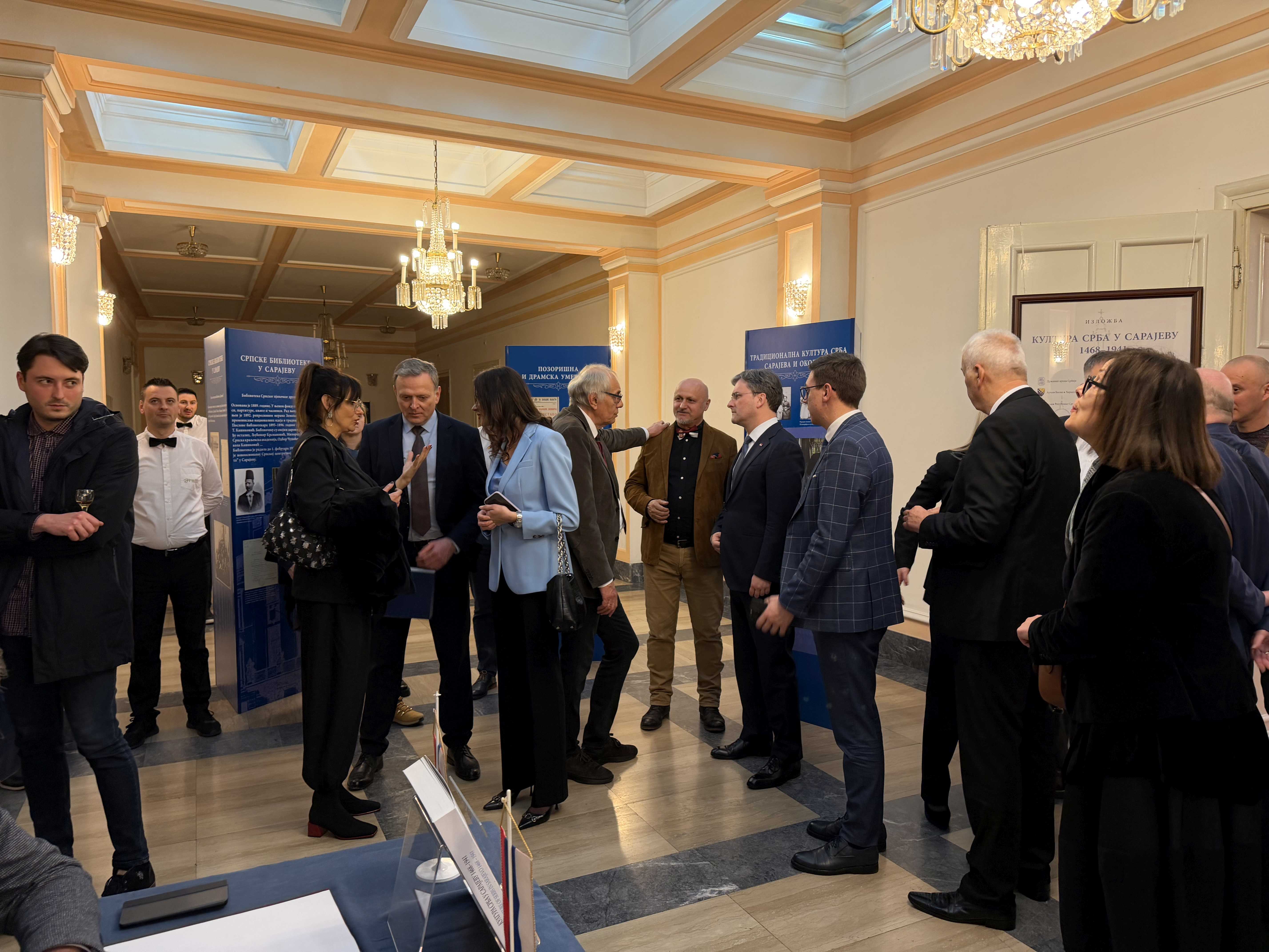 „То је историја испреплетена страдањима и голготама, али уједно и снагом културе памћења која се преносила са колена на колено- некада кроз народну песму, усмено казивање и епско предање, а данас кроз архиве, музеје, библиотке и научна истраживања, као најјача брана ревизионизму историје и историјских чињеница. Ова изложба, као и монографија представљају трајно сведочанство да су Срби вековима били не само присутни, већ и значајан чинилац културног развоја Сарајева. Истовремено, она јасно показује да је културна баштина тог града нераскидиви део укупне баштине српског народа“, нагласио је министар културе.