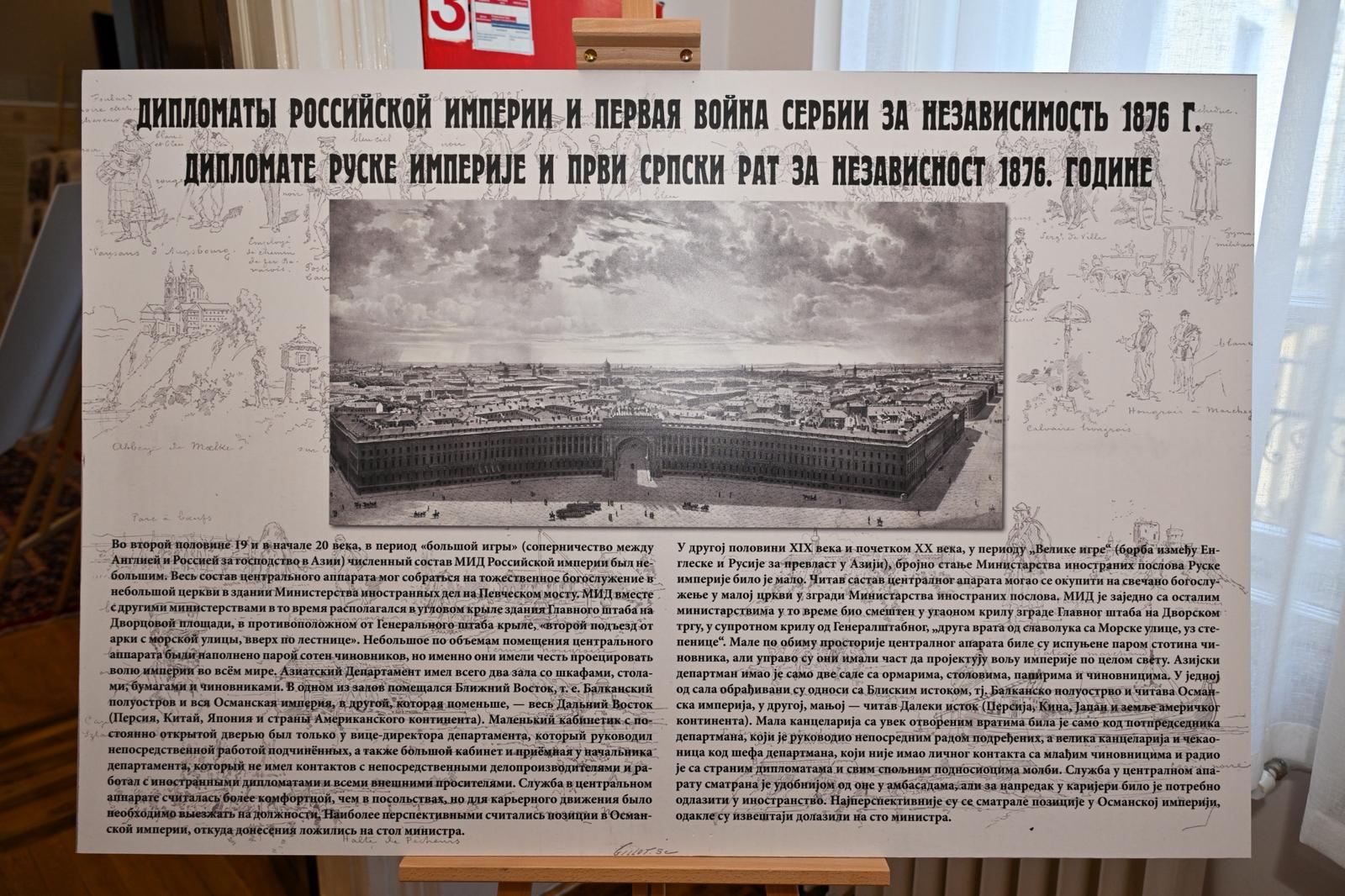Министар културе је напоменуо да изложба „Руске дипломате и српска борба за независност 1876. године“ има посебан значај подсећајући да су дипломатија и култура одувек деловале заједно а посебно у временима великих историјских изазова а уједно опомиње да су најтрајније везе међу народима засноване на узајамном поштовању, солидарности и заједничком културном наслеђу.“